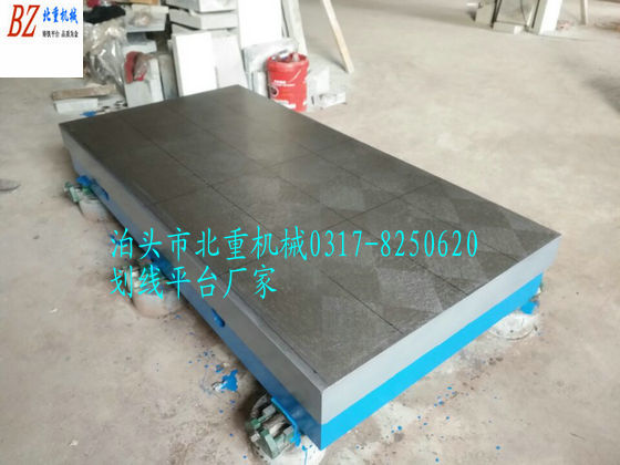 T型槽劃線平(píng)台材質:高強度鑄鐵HT200-300工作麵硬度為HB170-240,經過(guò)兩次人工處理(人工退(tuì)火600度-700度和(hé)自然時效2-3年)使用該產品的精度穩定,耐磨性能好。