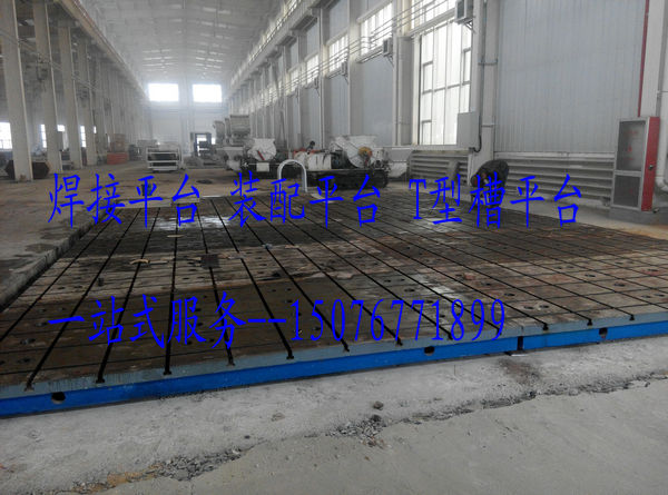 我(wǒ)公司為山西某國有(yǒu)企業製造的焊接平台,裝配平台安裝完成.該鑄鐵平台規格:2000*4000*300mm 共(gòng)計(jì)18件。表麵橫豎開有T型槽,可使用M20和M24的螺栓。T型槽(cáo)平台采用地腳螺栓和頂絲的(de)固定調節方式。
